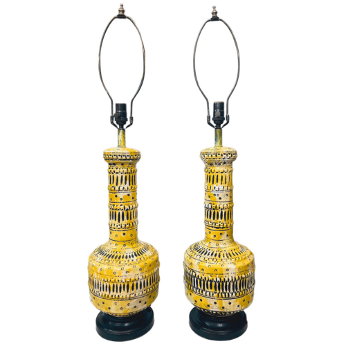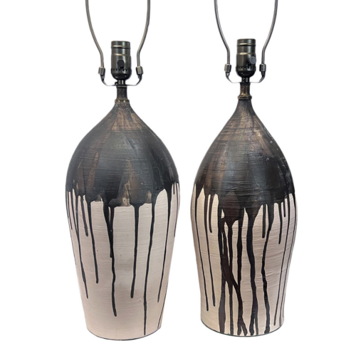 Pair of circa 1970’s Italian blue and white striped ceramic lamps