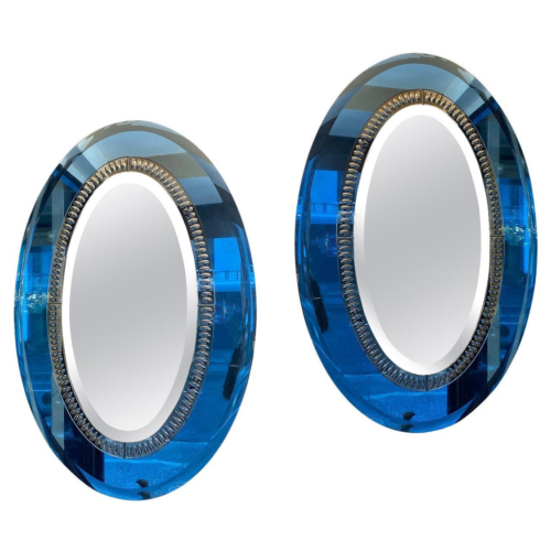 Hand Painted Blue Floral Cupboard with Red Cornice