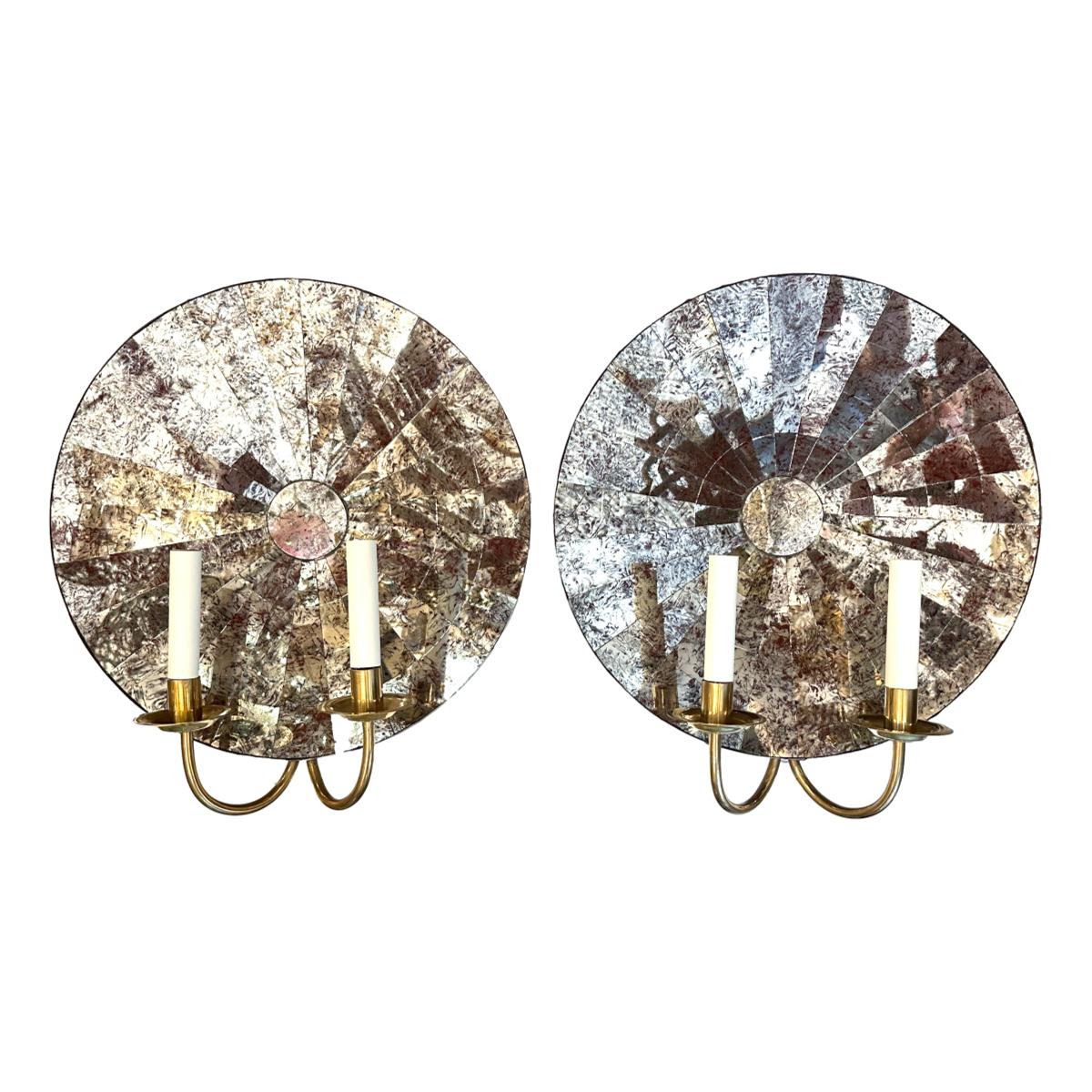 Pair of circa 1950’s American mirrored back double-light Sconces.