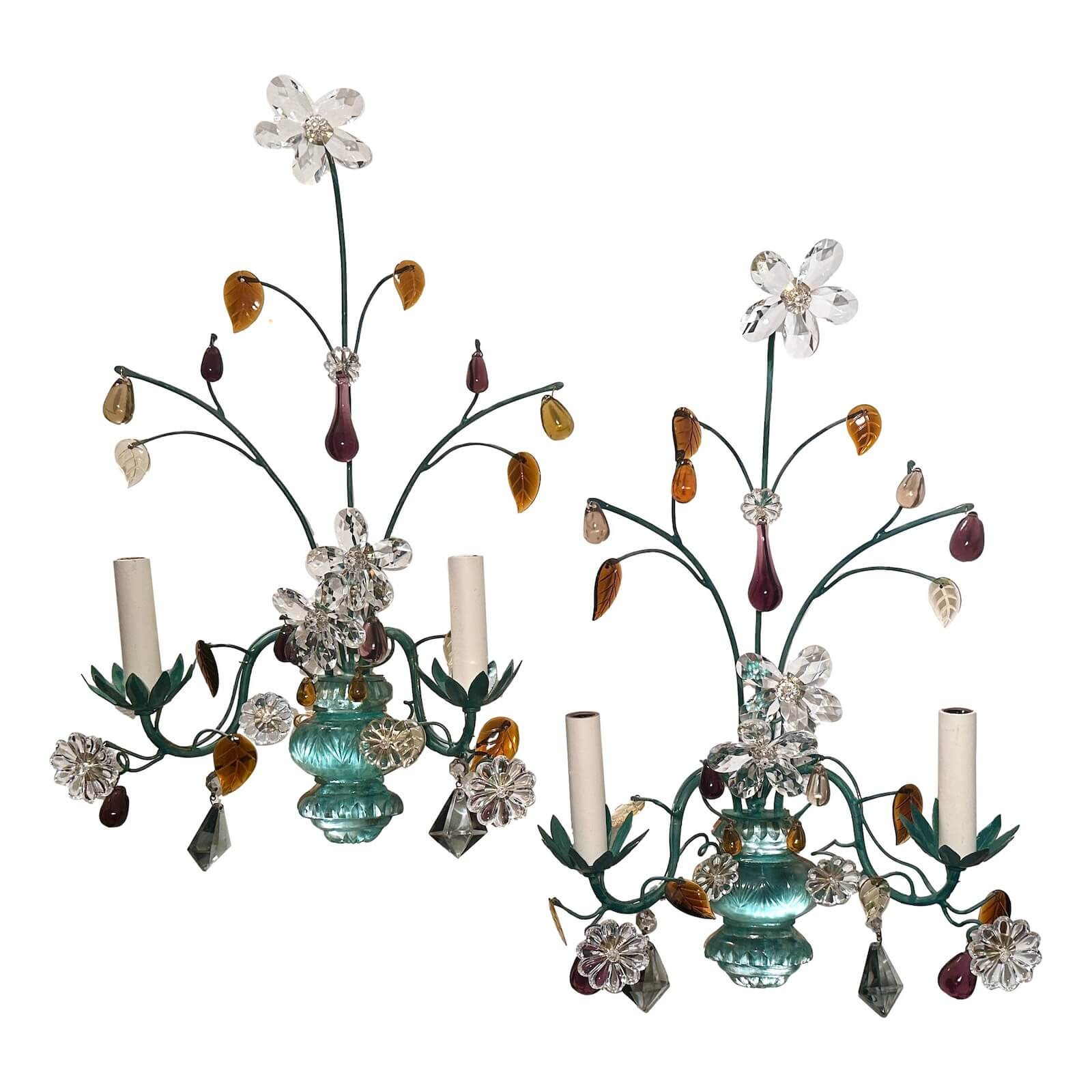 Pair French 1950’s painted sconces with crystal body and pendants.