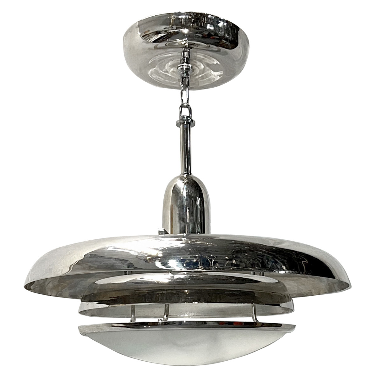 A set of 3 Italian nickel plated light fixtures with 1 Edison light each.